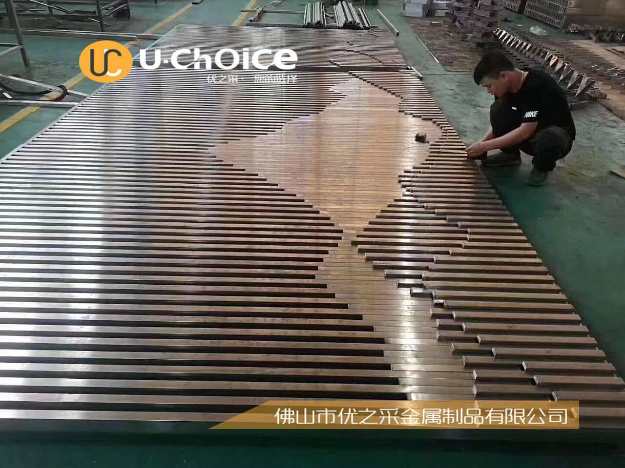 ? 制作過程中景觀電鍍覆膜等處理,因此具有堅固耐用,美麗大方。同時不銹鋼屏風造型獨特新穎,富有觀賞特性,金屬的光澤,裝飾效果表現現代化工藝的造詣,售樓部采用了不銹鋼材質凹造型,優之采造你所想!? ? ??