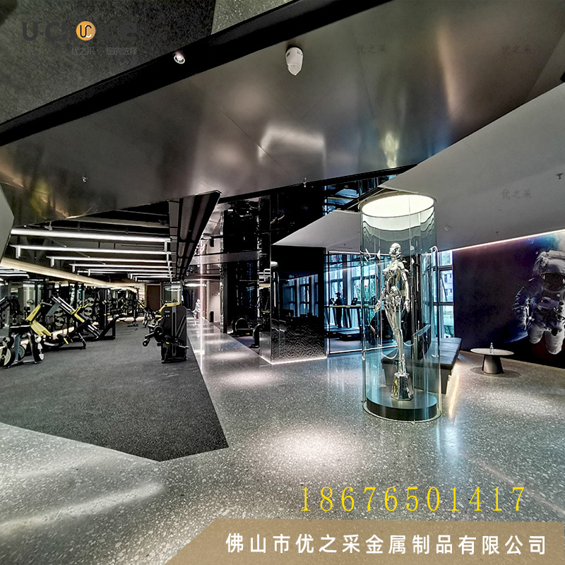 廈門邁菲健身房將“鏡面不銹鋼蜂窩板”應用于室內設計,以鏡面吊頂與燈光結合,構建強視覺沖擊力、獨具藝術的空間設計。這種環境氛圍最能體現設計師的設計思路,同時這也要求優之采廠家對產品嚴格的把握、表面工藝以及專業的“服務”體現。