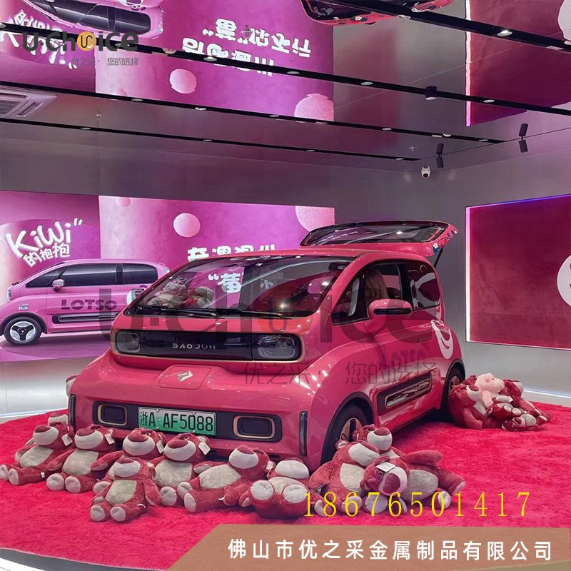 溫州五菱宏光體驗(yàn)店裝修建筑總面積共295m2,天花采用鏡面不銹鋼蜂窩板為裝修材料